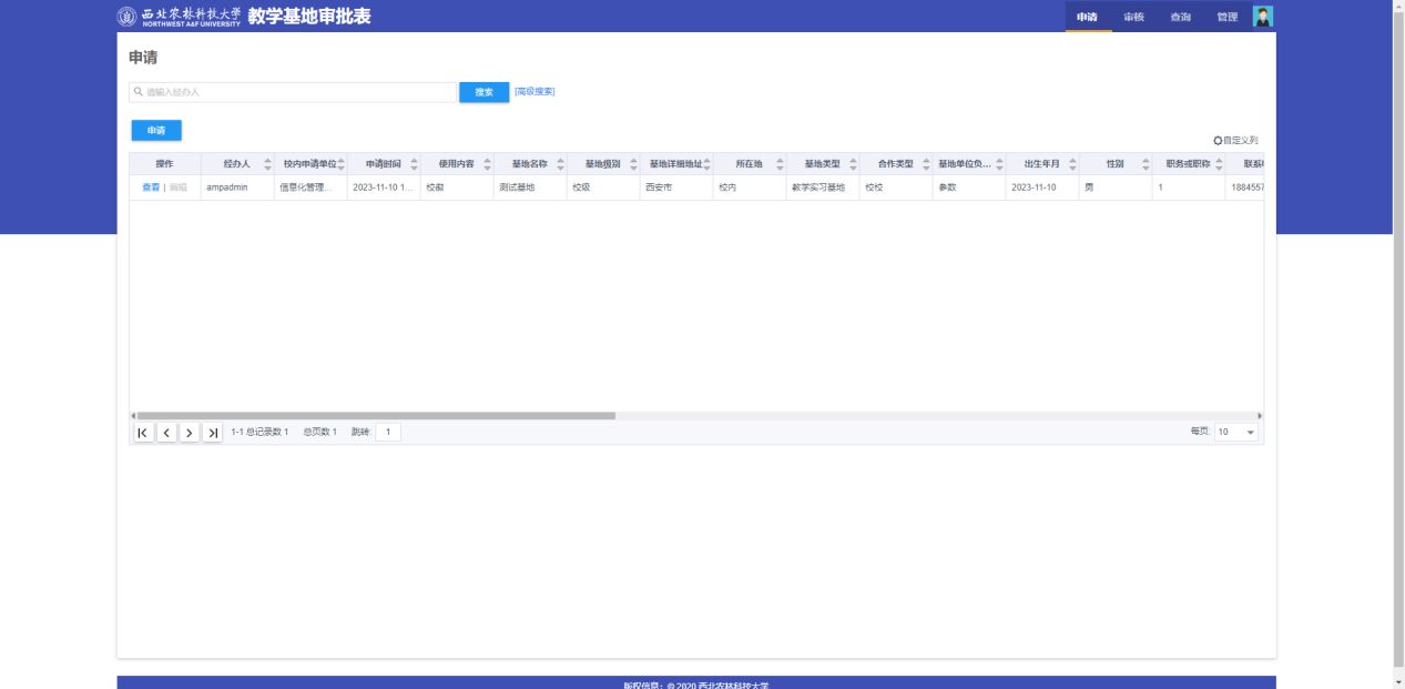 教学基地审批表申请界面如下图