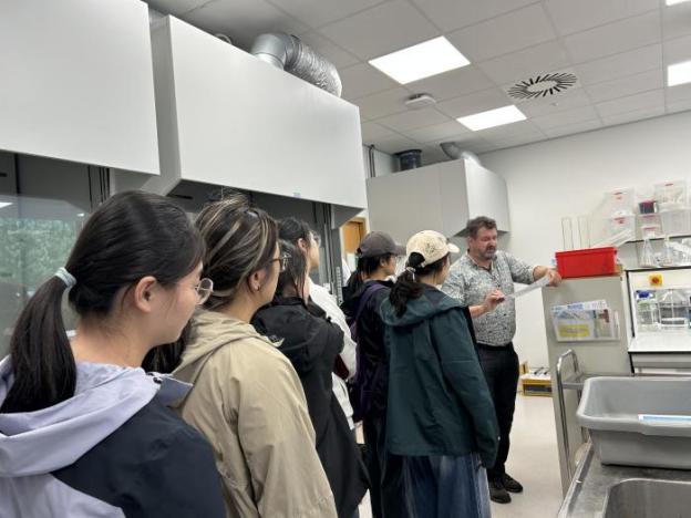 7月29日,项目组首先聆听了代尔夫特理工大学(TUD)Paul教授的水处理技术讲座,全面了解了饮用水的历史发展、关键水质参数、处理工艺(如紫外线消毒、脱盐技术)以及当前面临的挑战。下午,项目组参观了TUD土木与地理学院的水环境实验室,亲身体验了实验室在前置实验模拟和自动化资源管理方面的先进技术与应用。