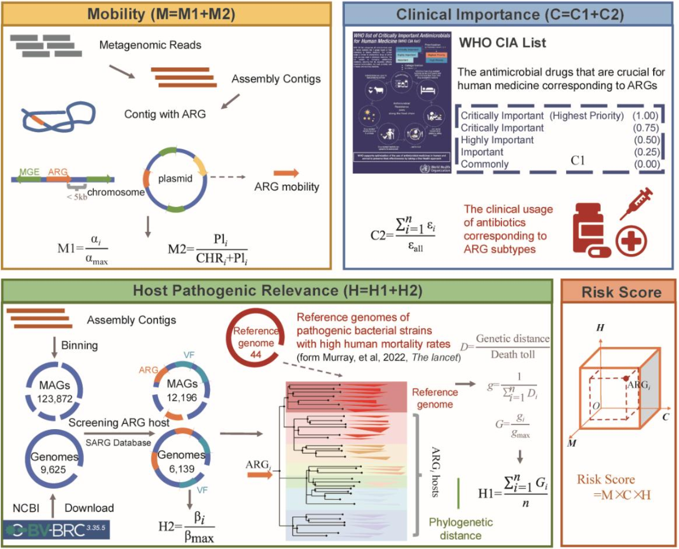 研究综合了 ARGs的移动性、临床相关性以及与病原宿主的关联程度,开发了一种创新的高分辨率的风险评估框架,确定了畜禽粪便中不同ARGs的风险排序。研究揭示了全球范围内畜禽抗性组显著的区域差异,强调了在主要畜牧业国家开展针对性监测与风险管理的紧迫性。通过机器学习分析,揭示了养殖密度、动物与人类抗生素使用情况等在驱动ARG全球分布格局中的关键作用。预测获得的全球畜禽抗性组风险地图,为了解全球畜禽抗性组风险的热点和开展有效监测提供了重要参考。