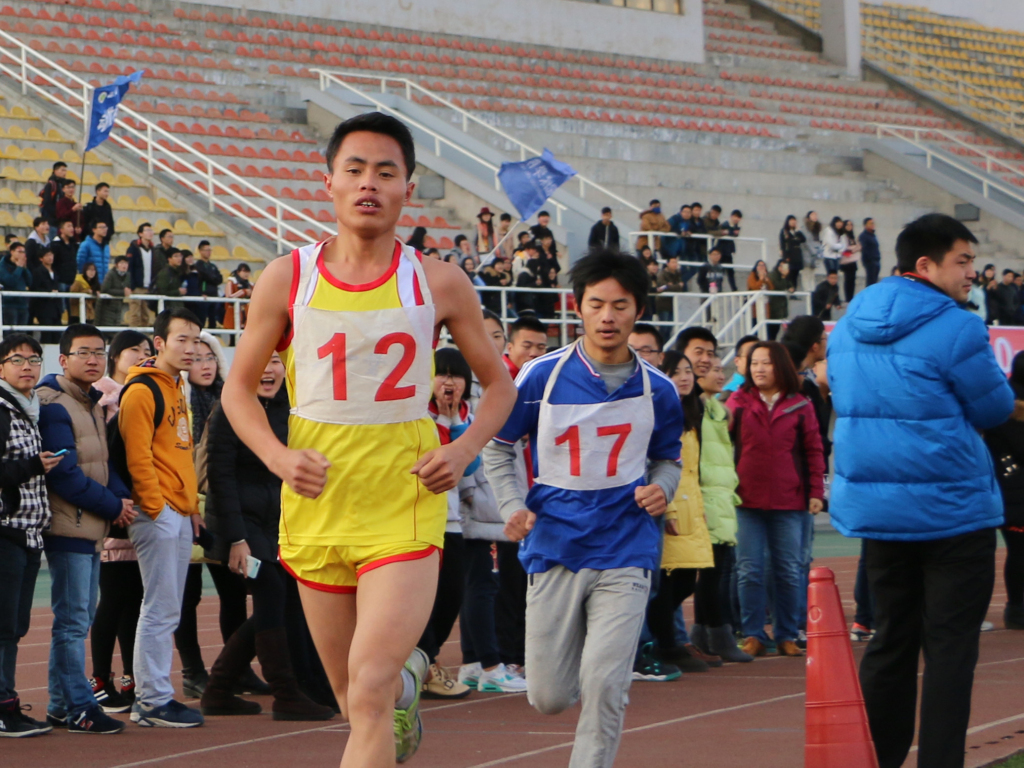 12月20日早晨,随着裁判员的一声令下,参赛选手们迎着凛冽的寒风,沿着红色的塑胶跑道,带着必胜的决心向终点进发,用速度和激情展示着青春的活力。观众席上啦啦队也开始了一轮特殊的比拼,“资环有我,有我必胜”的口号声伴随着鼓声带动了全场的气氛,有节奏的鼓点响彻田径场。资环田径队员们满怀信心,在红色跑道上挥洒自己的汗水,释放自己青春的活力。“东风吹,战鼓擂,资环健儿怕过谁!”就是这样的信念,让艰难的五千米、三千米被他们一步步踏在脚下。