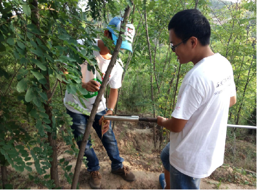接下来,服务队进行了创新课题的研究。在中科院安塞水土保持综合试验站的技术支持和研究员的知识传授下,队员们依照不同的采样方案在安塞的不同地区进行了科学的土壤采样。在采样的过程中,为达到科学严谨的采样要求,队员们不辞辛劳。尽管在采样过程中有队员被树刺划伤了,但是大家都咬牙坚持了下来。