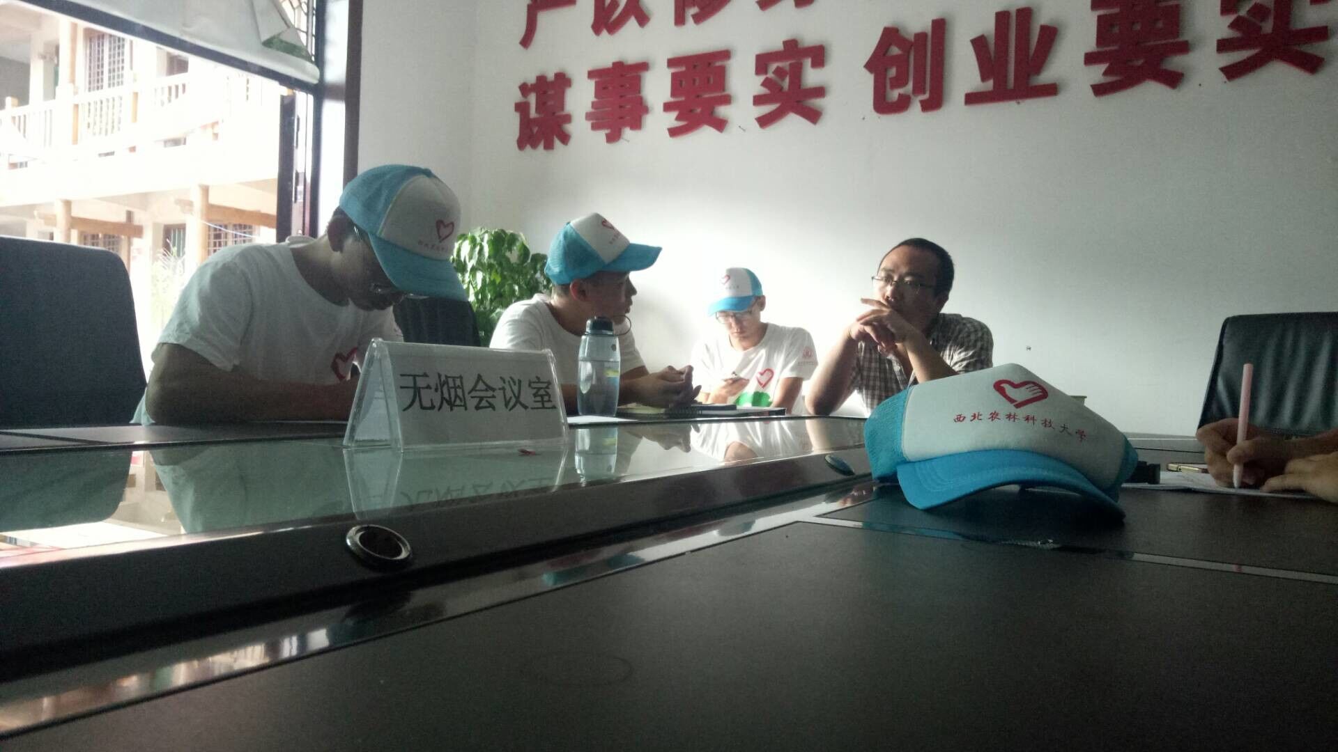 副镇长彭通在给队员介绍当地扶贫政策及实施情况