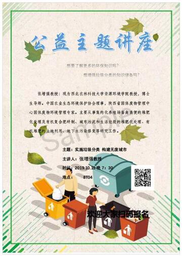 党的十八大以来,作为“五位一体”之一的生态文明建设越来越受到重视,特别是党的十九大,将生态文明提高到“中华民族永续发展的千年大计”的战略高度。而作为生态文明建设的重要内容和关键环节——垃圾分类,更是受到国家前所未有的高度重视。为此,学院特邀中国农业生态环境保护协会理事,陕西省固体废物管理中心固体废物环境管理专家、资环学院教授张增强作题为《垃圾分类,无废社会》的科普讲座,一方面让同学们更深刻的理解了本次活动的目的与意义,另一方面也有利于同学们切实的把活动中心贯彻到自己的日常生活中。