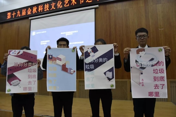 为树立和践行“绿水青山就是金山银山”的理念,增强我校全体师生垃圾分类的环保意识,进一步繁荣校园文化,打破专业的限制,调动师生保护环境、创新创作的积极性,资环学院联合草业学院于2019年11月15日在资源环境学院报告厅举办第十九届金秋科技文化艺术节之环保创意大赛决赛。本次大赛分为初赛、复赛、决赛三个部分,为同学们提供一个展现自己科技创新能力的舞台。经过初赛、复赛的激烈角逐,共计有16支队伍来到决赛的现场。