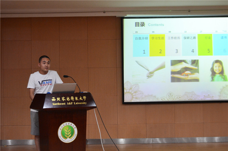 城管112班卫浩浩同学,毕业后将进入南京国图信息股份有限公司西安分公司工作。他首先向大家讲述了一路走来的感受与遗憾,展现了“岂能尽如人意,但求无愧于心”的积极人生态度。同是城管112班、被保送到中国人民大学读研的张悦同学,以自己参加各种活动得到的经验教训为例,劝勉大家要在学习生活中学会改变、勇于进行不同的尝试。即将成为浙江大学研究生的地信111班郭雅静同学,深入到学习中的各个细节,给大家分享了她的学习经验。进入北京师范大学就读研究生的水保114班王文轩同学,主要介绍了他在工作、科研和保研的经历,同时以自己的生活经历鼓励学弟学妹在行走中生活,在生活中阅读。最后,大家踊跃提问,与优秀的学长学姐交流大学生活与学习各方面的问题。