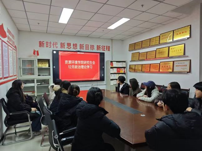 为深入学习贯彻习近平新时代中国特色社会主义思想,进一步提升政治理论素养与使命担当意识,资环学院研究生会于2025年12月18日,在资源环境学院106会议室组织开展了12月份政治理论学习活动。本次学习以“深学细悟强信念,勇毅笃行建新功”为主题,由研究生会权益心理部负责人原胜轩领学,研究生会全体成员参加学习。