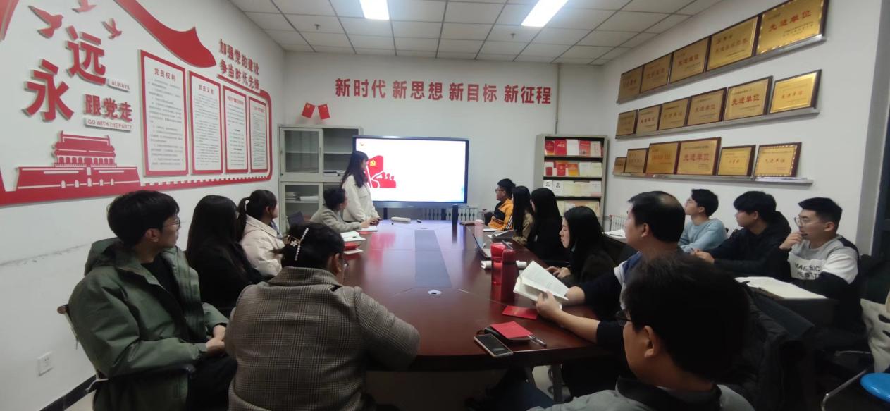 会议聚焦重点内容由支部副书记刘格格组织领学,把学习大会报告与学习大会系列讲话和相关文件结合起来,进一步领会蕴含其中的重要思想、重要观点、重大战略、重大举措,做到深入人心。会议聚焦核心要义开展领学,入党积极分子王明飞、袁钰琪和吕会帅对大会文件、系列讲话和有关辅导读本,针对党的二十大报告中的重要章节和重要论断,开展特色鲜明、形式多样的专题研讨交流,推动学习贯彻党的二十大精神走深走实。