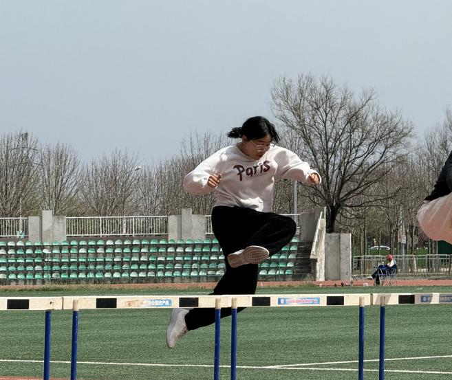 跨栏赛道上,我班健儿身姿矫健,助跑、起跨、落地一气呵成。他们跨越障碍、奋勇向前,以无畏勇气和坚定信念,为班级争光,尽显飒爽英姿。