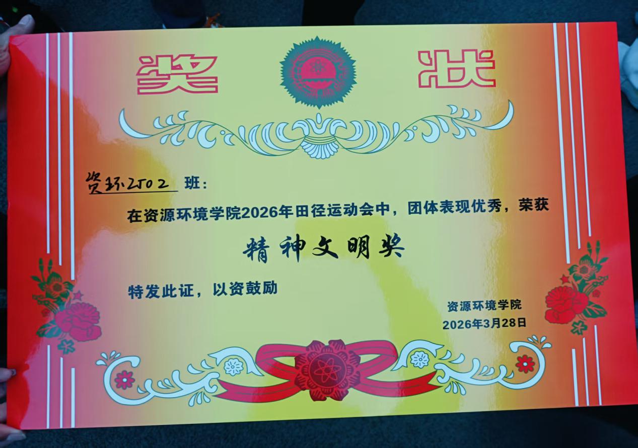 在本次院运会中,我班全体同学齐心协力、奋勇拼搏,以饱满的热情和昂扬的斗志投入各项比赛。赛场上,运动员们全力以赴、挑战自我;赛场下,同学们文明观赛、呐喊助威,展现出良好的班风风貌。经过大家的共同努力,我班最终荣获先进集体奖和精神文明奖两项荣誉。这份荣誉,是对我班运动实力与精神风貌的双重肯定,更是班级凝聚力与向心力的最好见证,彰显了资环2502班团结向上、永不言弃的青春风采。